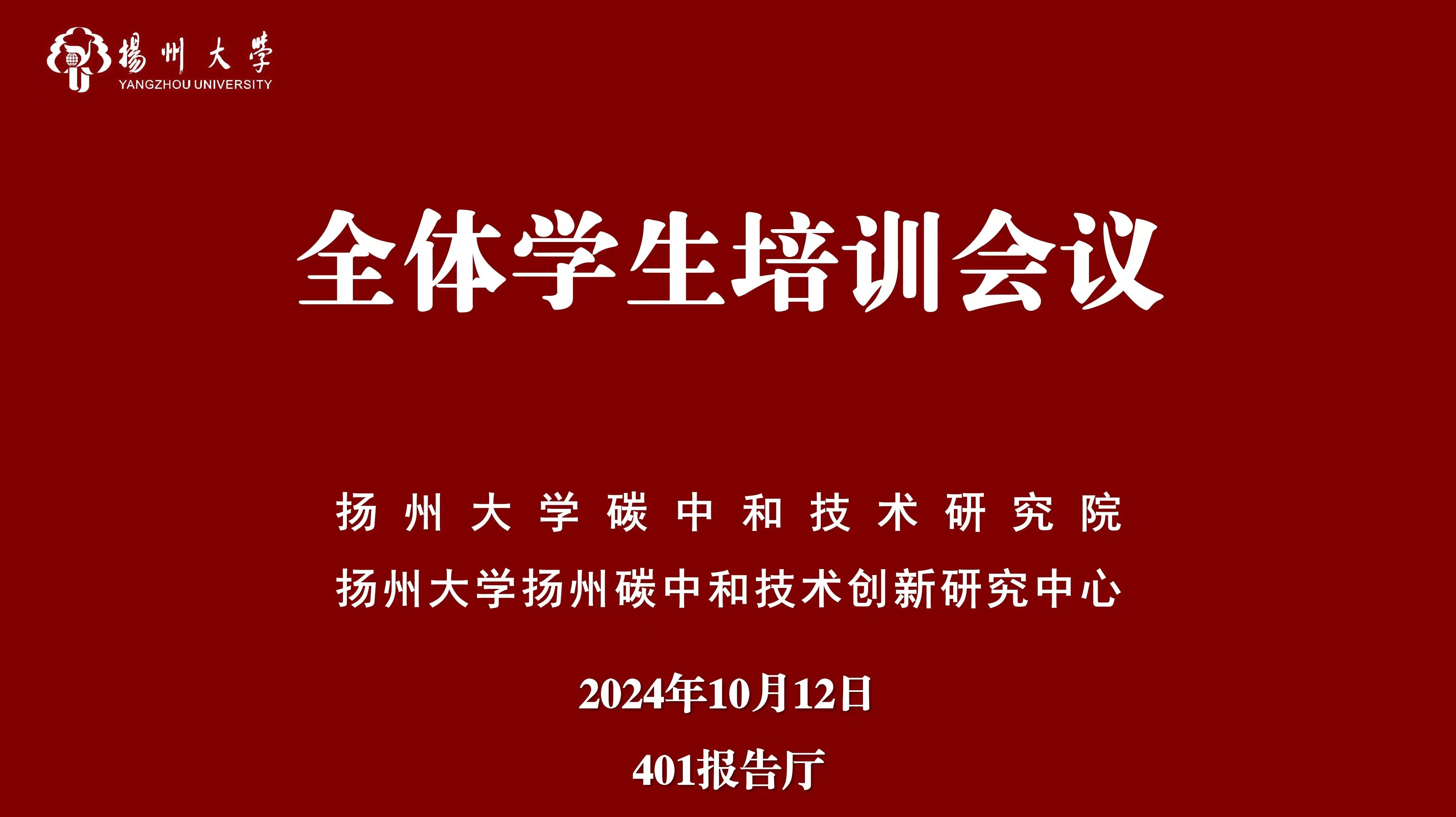 扬州大学碳中和技术研究院于20241012日在校外中心成功举办了全体学生培训会议。此次会议20余位教师和80余名学生共同参与。