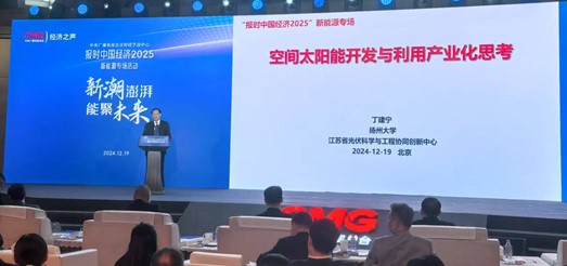 扬州大学丁建宁校长应邀参加了本次主题活动,并在会上作了题为《空间太阳能开发与利用产业化思考》的报告。报告中,丁校长深入探讨了空间太阳能作为未来可持续能源的重要潜力,分析了其在技术、经济、环境等多方面的优势与挑战,并提出了加速其产业化的战略思考。他强调,随着科技的不断进步,空间太阳能开发不仅能为地球提供源源不断的清洁能源,也将成为推动全球能源结构转型和促进绿色低碳发展的关键力量。
